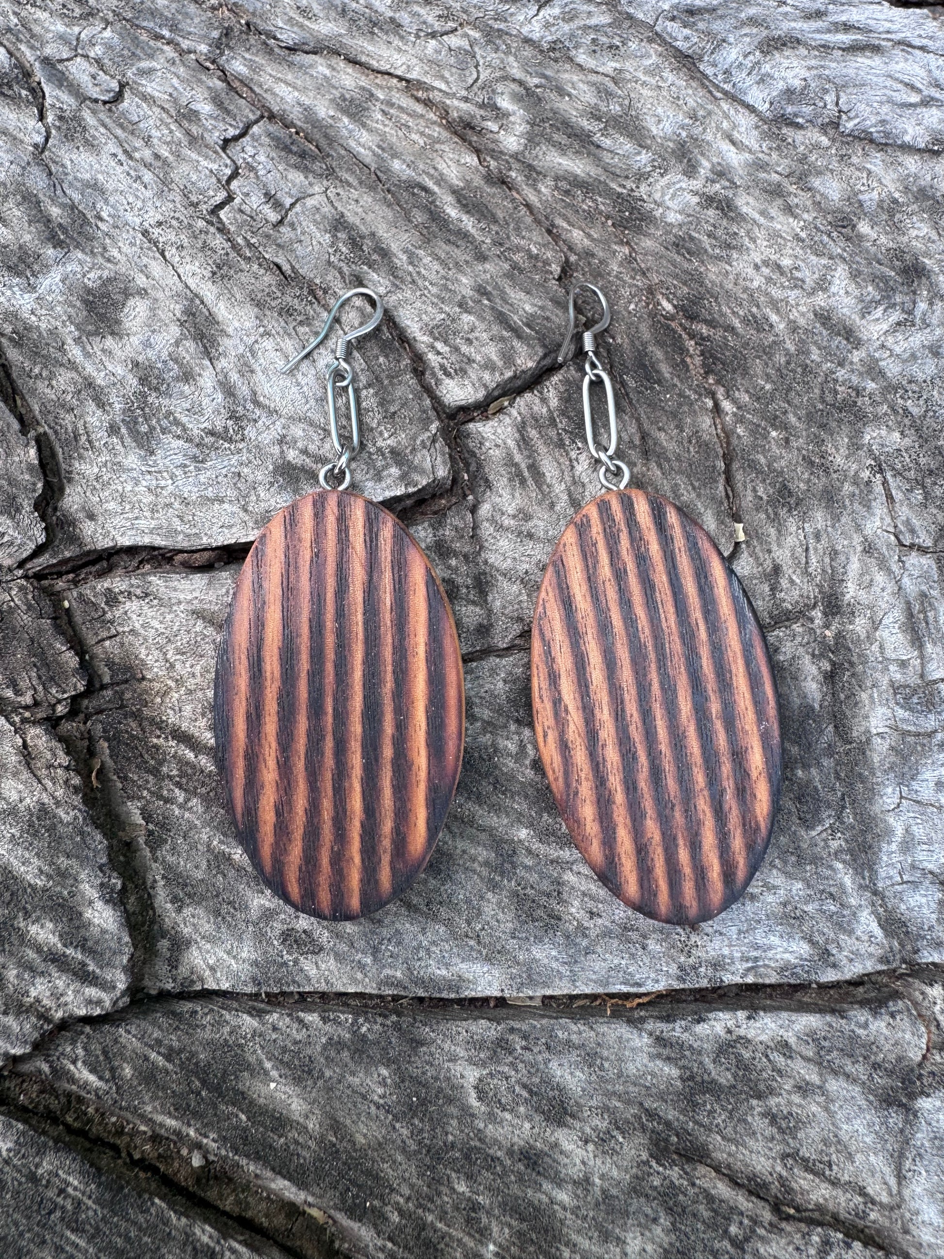Handmade Torched Ash Wood Earrings | Organic Finish & Stainless Steel Hooks